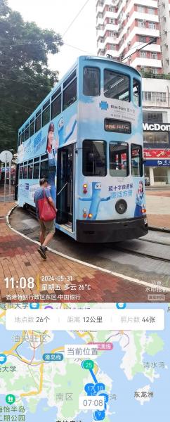 早晨坐118路公交车,到鲤鱼公园站公交车没有及时变字幕和报站导致我多坐了一站,以后要随时查看地图,要是大站就麻烦大了。换乘9路车,下车车站就在龙脊路段入口,这个司机好,人家车不走等着我走正路,我和人家比划先拍照个站牌再爬山,司机微笑着车启动离开。龙脊线确实美丽,两侧都是海洋村落白色沙滩,山坡度不大,还没有北京西山森林公园高,有瀑布、溪流、雨林。环境友好适合溜娃,要不然都说这里是偶遇明星的佳地呢,明星身子骨强的不多,说业务忙都是遮掩鱼。途中和一个遛弯的老汉聊天,他说香港退休可以拿到年薪25—75万元,但普通人买不起房子大多租房住,他自己20多年前买了个25平米的房子三个人住,他还给我比划厨房这么小卫生间这么小,然后哈哈笑,昨天房间有个台湾小伙,他说这里物价比台贵一倍。3个小时就到了大浪湾村,在龙脊是只遇到了2个人上山 。9路车每天到这个村只有两班车,其余时间小巴车代替,20分钟一辆,比大巴车贵2块钱,就是满座就不让上了,这里有个村规要求必须满足本村村民优先上车但仅限制4个名额。在筲箕湾(地铁站)有个集贸市场,西红柿最便宜卖到10港币一磅,大部分是14—16元,超市生鸡蛋3元一个,茶叶蛋卖5元。我在这里吃了碗牛蹄筋米线30元。我坐上了铛铛车,司机说下车刷卡,走了四十分钟走到金锣湾也就是7公里左右走了46站,有时候不到100米就是一站,马车速度手扶拖拉机感受。坐的人还挺多,这时从值班室来个人和司机交代了一下,然后广东话播音我也听不懂,全车人就都下去了,我要刷卡,司机摆手说不用。从金钟坐东铁地铁线到香港中文大学17.9元昌,我进地铁就看前边人排队,地铁车厢两个门只开一个门,座位是高靠背对面坐我还奇怪呢又看到车厢告示进这个头等舱必须提前买票或者八达通打卡,下了车我在站台上看打卡机告示说不签到发现罚款1000港币,吓死我了差点破财。回程从大学到红磡7.8元,不比公交车贵,有时还比公交便宜。这个大学进来只要登记一下证件即可,有山有水还有教堂。还有植物园,校友路径,我特意买了一份纪念品还加盖了纪念章。出来红磡地铁站就是香港理工大学,继续走就到了香港历史博物馆,只是这里唯一的一个展览是河南省博物馆办是夏商周题材展览。对门是香港科学馆,只是收费我就没去里面看。这边地铁展览馆都没有安检,地铁卫生间在闸机外边很方便过路人。一天下了数次雨有大有小,只是都像程咬金的三板斧,一会儿就出太阳,一会儿又雾气昭昭。