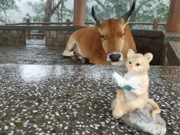 7:35下车 ,起步景色不错,路上有瀑布有草垫,10点钟就到达山脊石头屋处了。这时大风刮起,2024年第一个台风,香港这里称呼是3号强风。蹲在地上用雨披把人和背包裹在一起,风稍小跑到一个大石头缝里面待命,半个小时后雨点没了,登顶成功,下山走了个小路后来就有了钻树林茅草模式,按着树上标记走错了岔路,有雨不好拿手机看轨迹,十二点岩石下午餐,之后按照南瓜叶教诲的安全原则回撤,按正确轨迹顺利找到凤凰径正路,石头阵路上捡到一个女士帽子,我给挂树上了,路遇广东来的学生模样8个女生正在上山,穿着一次性雨衣被风吹的东倒西歪,我劝她们下山得了,她们说不能白来。下山口有个亭子,一个老牛卧在中间,另一头老牛不怕雨在草垫上卧着。我把香港自制的登山杖放在了这个亭子里给有缘人用吧。刚到公路就来了一辆23路,疾跑几步司机也是真等,本想再走一段凤凰径第三段试试看,疾风细雨早撤为妙。明天计划参观港珠澳大桥,访问澳门。今天爬的顶峰是大东山,是香港第三高峰。