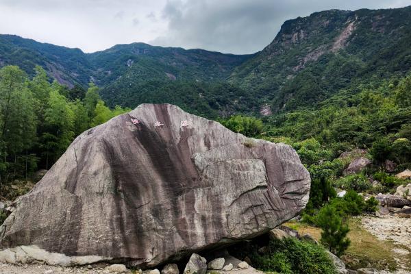 开题人继续手脚并用,向上爬升到1200米高度后,坐在一处凸出且平坦的石头上稍事休息。看规划轨迹,离登顶还有4公里左右,爬升约300米。面前的石头宽一米多、五六十公分高,本想试试能否上去,但发觉山上风力渐强,人稍微站起来,就被吹得摇晃,而且两侧均为陡壁,对有点恐高的开题人来说极不友好。看看时间,已是下午两点,综合分析上山路况、天气状况以及返程时间,如果继续登顶,即使顺利可能也要六点才能返回黄龙寺,开题人果断决定还是原路下撤。