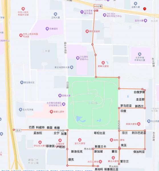 图上的32个使馆一个不落全走了一遍。使馆区除了不能停下来摆拍,还是很适合city walk的,路上没有人也没有车,只有树荫。每个门前的警卫,目不转睛地关心你的一举一动。