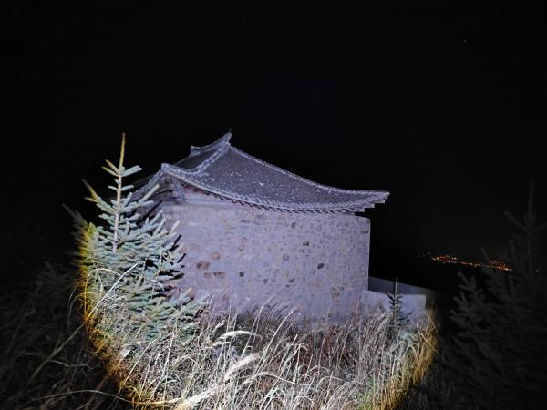 这是典籍中仅见的关于登山神的记载。我们遵照神启,向着傲立的铁杆、沉默的瞭台、灿烂的星汉疾进。遇到特别难以通过的地方,就从右侧绕行,果然,路好走了些。18:40终于登顶。接下来还有8公里大路,于是又匆匆下山,直到麦子地,看见空旷的黑暗中忽闪着接车司机手机的微光。