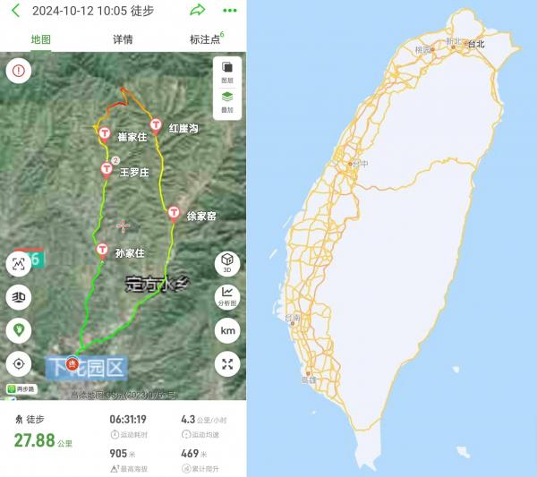 停止GPS徒步记录,发现轨迹有点儿像宝岛的地图,拉长镜像的: