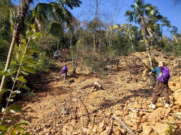 凤形山被人修了大路,在岔路口,当我两边线路都想走而迟疑之时,网管说要走捷径,早点去乌川水库边的烂尾楼玩,那就一起走吧。