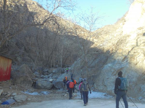 参加㞱㞥岁岿社海运队12.22金华山+雕花长城活动,早7:28自金安桥乘中巴车,经京蔚高速、236省道,车程约1小时40分钟至涞水九龙镇南湖村,下车后沿水泥村道向西进山,未见有护林员值守阻拦。