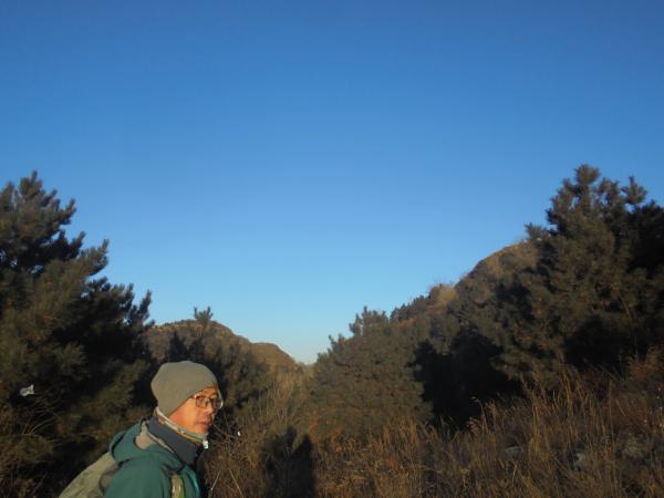 15:10,走友抵达月亮湾岔口,在此结束踏冰,准备经成熟路线翻山至黄柏寺下山。此段路线在一南北向张裂隙的基础上开辟而成,经过官帽山与南崖之间的延庆北山山脊最低点,顺直好走,难度不大,纸面上的200米爬升、2公里路程,在一路闲侃中,人间之气息便已浓郁。