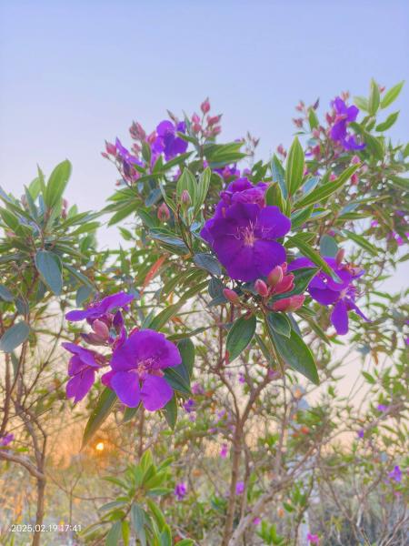 树丛后三角梅的闪耀背影