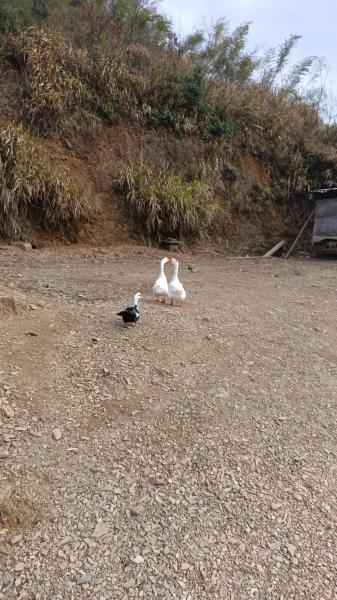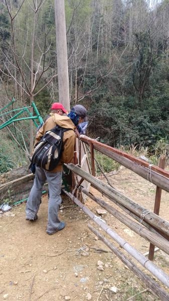那边就是羊肠小道,幸亏有牧羊人清理过,但仍然难走,走到山口,没有上防火道。沿小路来到废弃房屋前,已经看到对面大路了,溪水边小路清理很好走,越过溪水到了关口斗垅组,老房子还有大哥住,休息洗漱,老人客气,端来茶水,老人在此养羊鸡鹅。