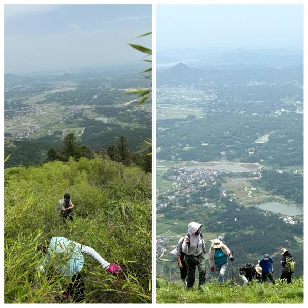 上午10:30从水濂路边起步-下午3:10到主山脊线,爬升段基本在陡峭的山体探路找路前行:战壕般的土沟坎,低矮密布的小竹林,陡峭松树林,蓬蓬勃勃密密麻麻铺就的植物小径,伴随着的是采摘党的惊喜连连,好一条精品黄精大道黄精窝丫,采不完的黄精挪不动的腿。登顶巅峰亦黄精巅峰,他们说此地黄精吸天地之精华,千载难逢,下午3:10-4:30 采摘党在主山脊顶遍地黄精处,不知疲倦地整整干了一个多小时,仍意犹未尽。往南天门主山脊方向仍有甚多的漏网之鱼,还待下次。