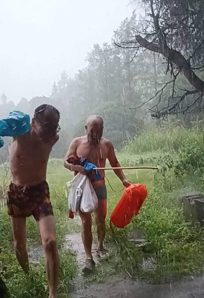 只有维力没带伞,就那样淋着走,她说自己全身都是速干的。