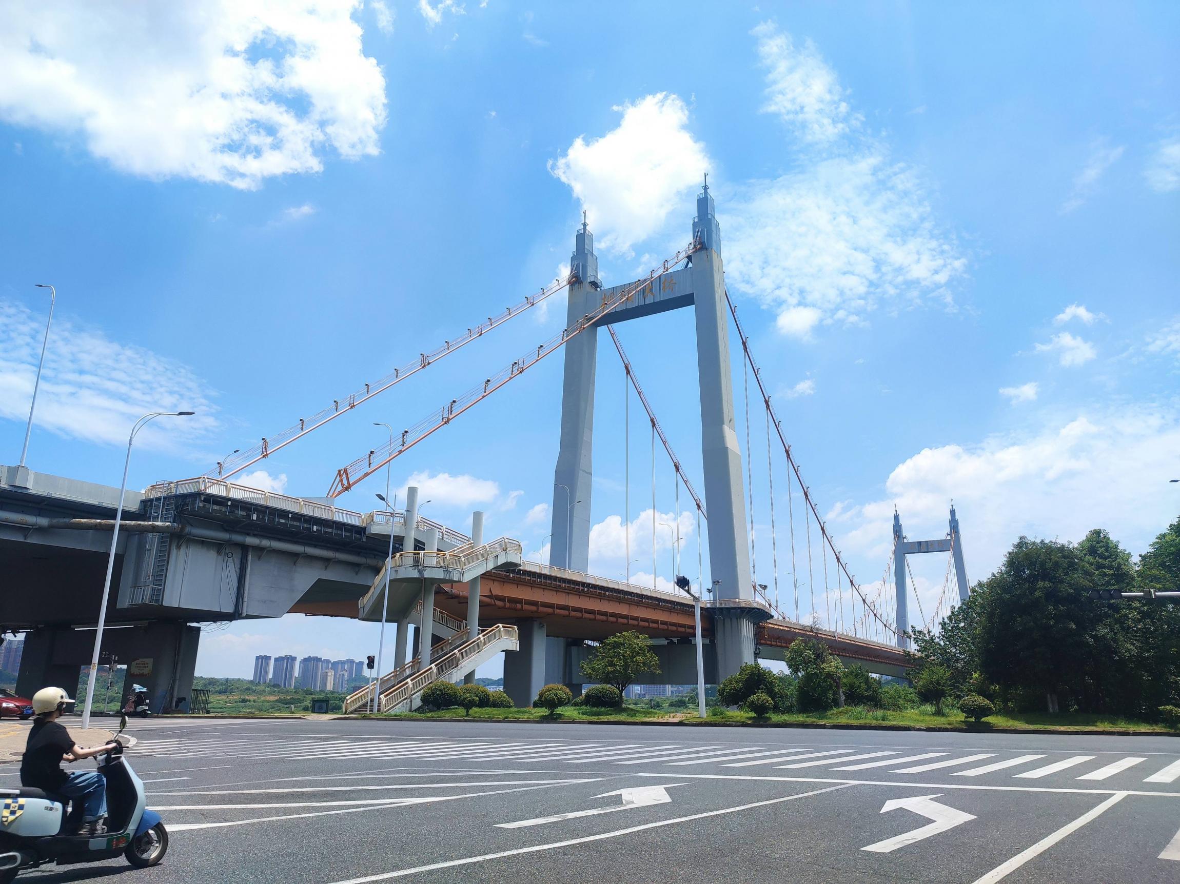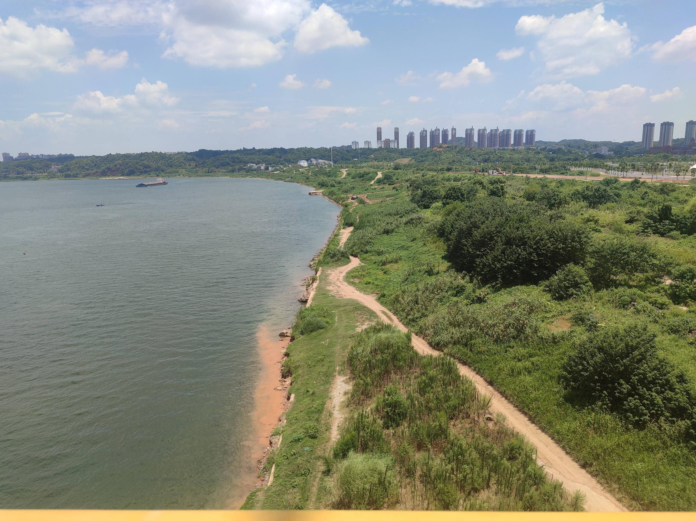 沿湘江边的沿江路顺时针向北骑行,蓝天白云,江风阵阵,体感温度至少45度以上;