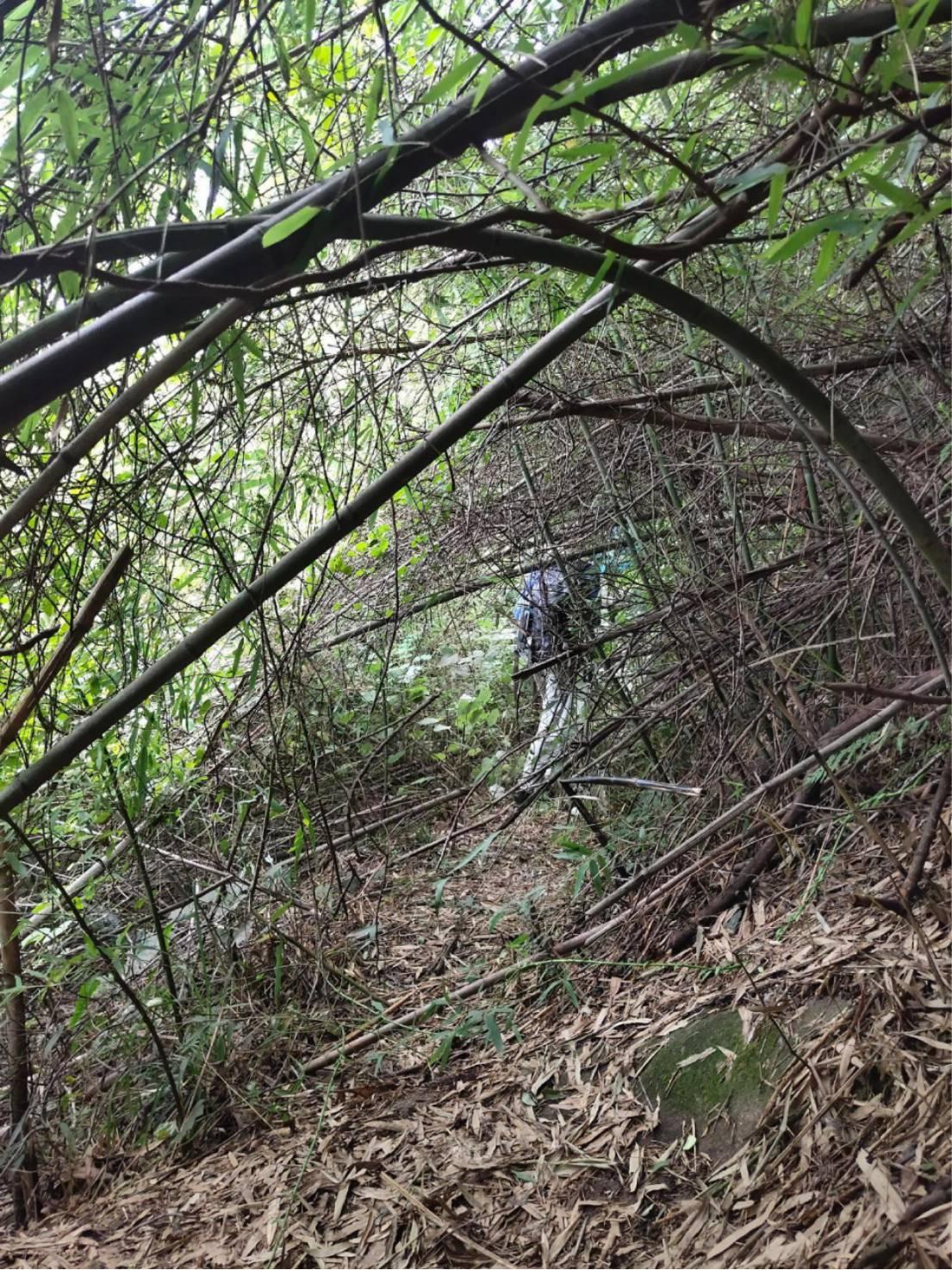 难度果然大,上来就是钻林子。看到了一座新坟,一般徒步看到坟是比较恼火的,因为坟后面大概率没路,好在坟多得是,一座摞一座,新坟压旧坟,世上本没有路,上坟的人多了也就砍出了路。