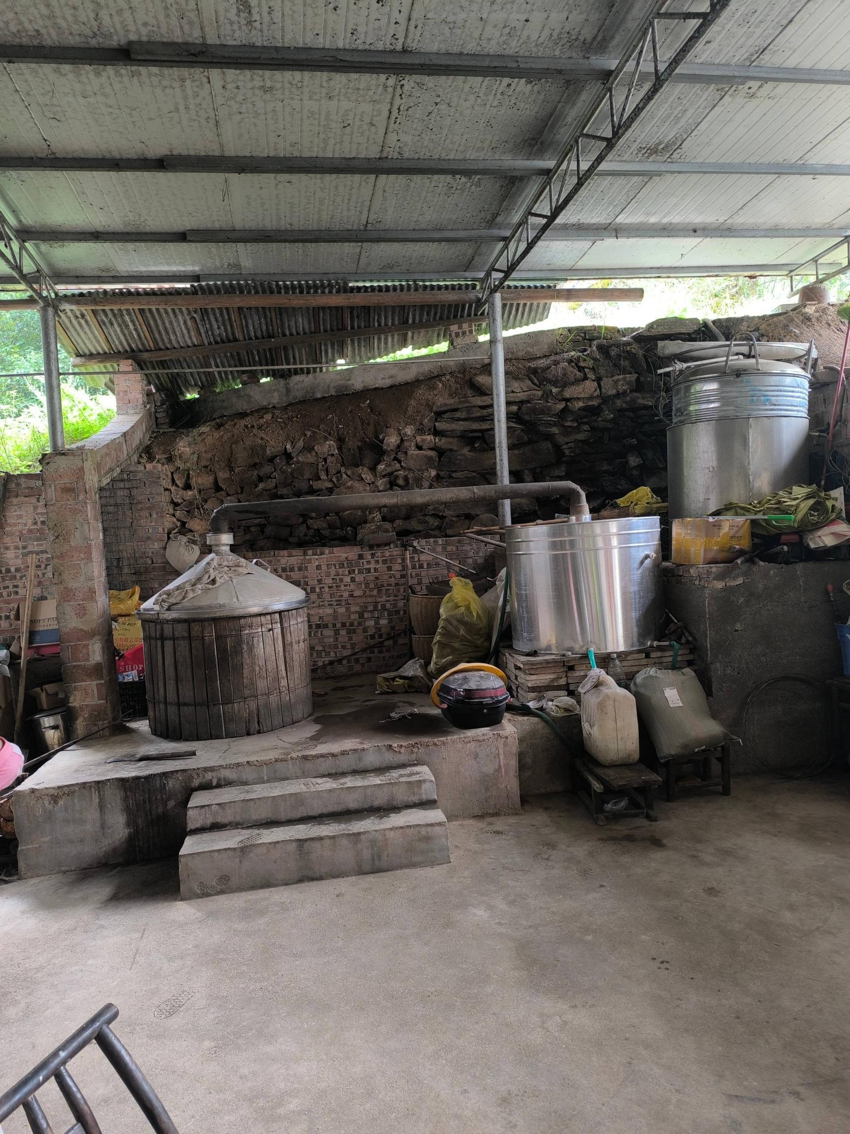 穿越垭口后又是一段机耕道,开满了各式各样的小野花,彷佛绣花地毯一样。在宋家岭看到了两棵高大的拐枣树,牵手给今天的这条山谷命名“拐枣谷”,名字朴实无华,一如这里的环境保持着原生态,纤尘不染。宋家岭到双江村都是水泥路,我们在双江小学休息了一下。这个小学已经停办了,被一对夫妇购买了下来。他们家酿谷酒,我们参观学习了一下土法酿酒。原来酿酒时,谷子是不需要抛壳的,在酒曲的作用下,淀粉酵解蒸发,最后剩下的全是空壳子(这是酒糟吗,忘记问了)。他们还挖黄精,自己十蒸十晒做成黄精干。儿子在食品厂上班,家里有不要钱的饼干,大家都觉着又香又脆,吃个不停。女主人说半成品的饼干都拿去喂猪了。彻道者看上了老板的黄精,一股脑全买下,社港的GDP又蹭蹭涨了。女主人很热情,说可以预约饭菜,有黑山羊有土鸡有板栗有黄精,听的人都走不动道了。