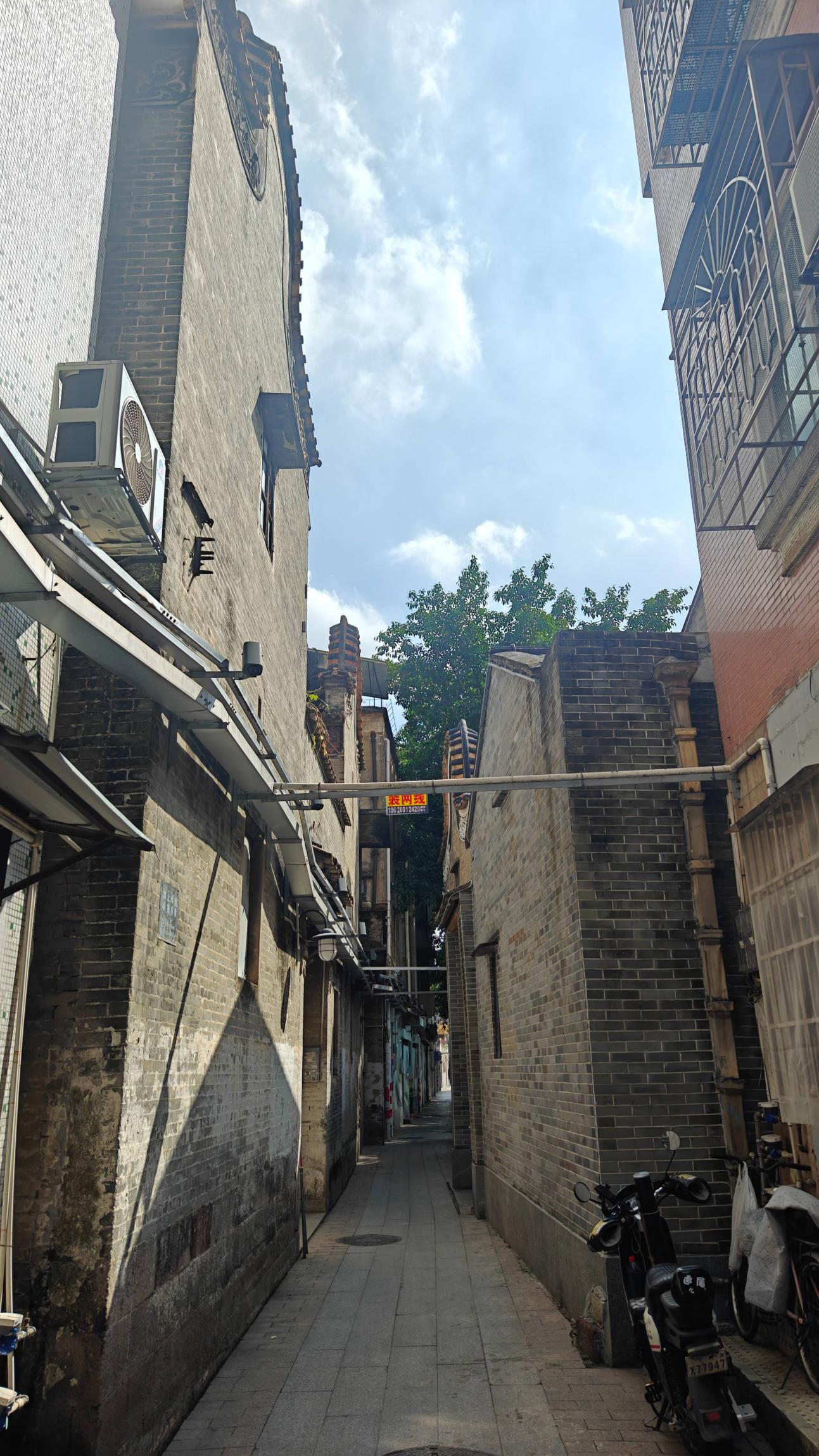 来到了先锋社区。先说下为什么叫做先锋社区,是因为解放番禺首先来到的这个地方,所谓先锋队,所以改了名字。其实我猜想,这个地方应该是非富即贵的人住的地方。看看这些老宅。