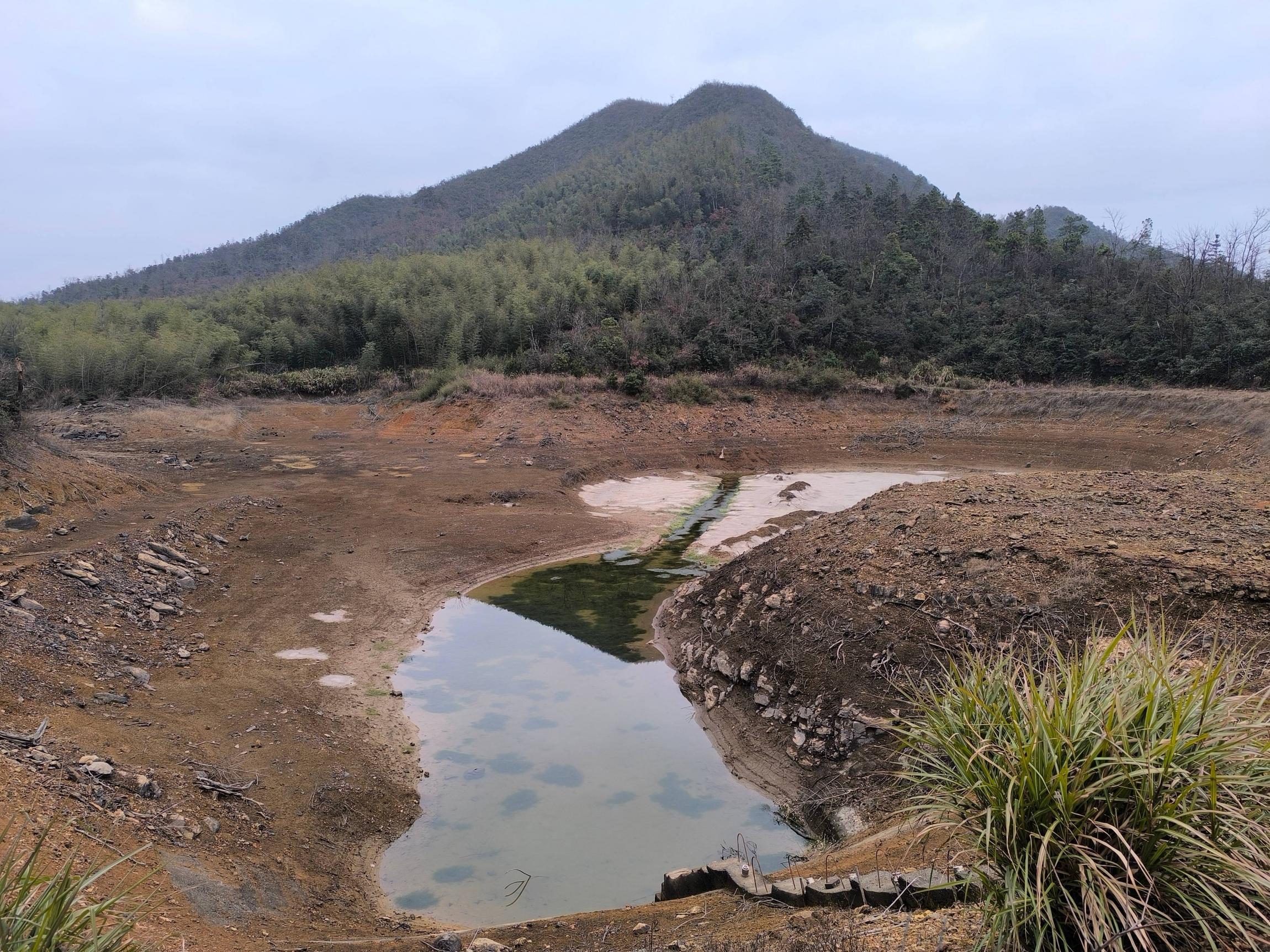 山顶遥望水库,注意左边的竹林