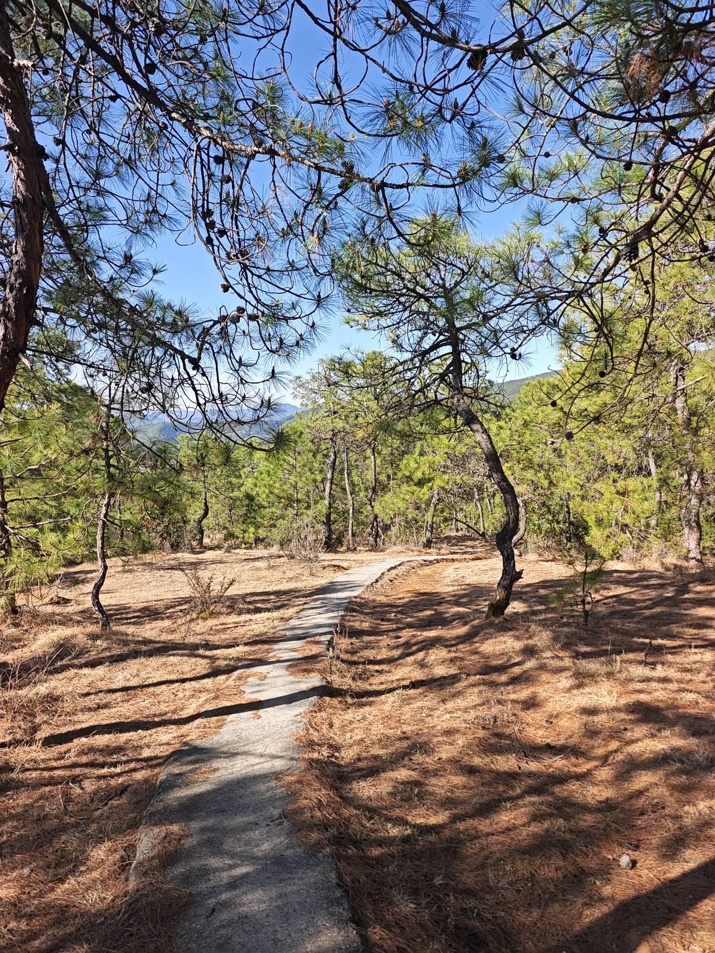 我踏上了那条水泥路,沿着它走了一段,弯道很多,不时有车从后面驶过,看来波多罗不像我以为的那样小众。很快我发现一条穿过松林的徒步小道,虽然也用水泥铺上了,但水泥中混了高比例的粗砂子,磨擦系数很大,制造出一种未铺装道路的质感,走起来十分过瘾。不知道哪位大善人修了这条徒步小道,我祝他善有善报。