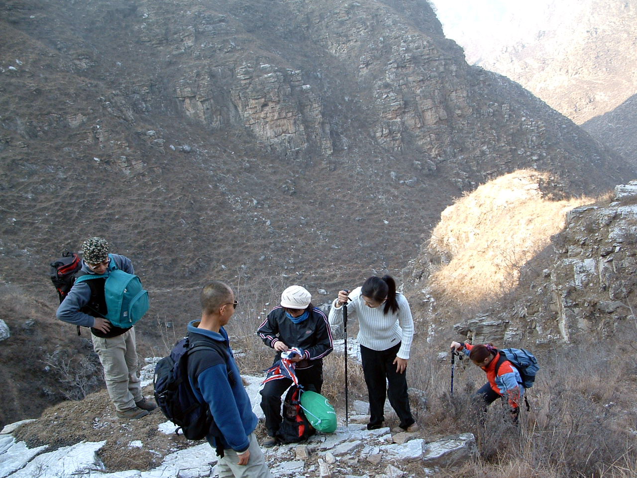 爬上阎王鼻子(左起:北极星、山僧、蓝蓉、奔跑的拌面、CHAOS)